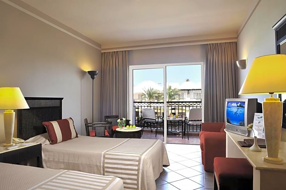 4 twin beds-344-sq-foot (32-sq-meter) room, balcony with garden views